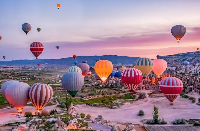 Experience Turkey’s cultural richness amid ancient ruins, bustling bazaars, and captivating landscapes. Soar over Cappadocia’s surreal terrain on a hot air balloon, immersing yourself in natural wonders.